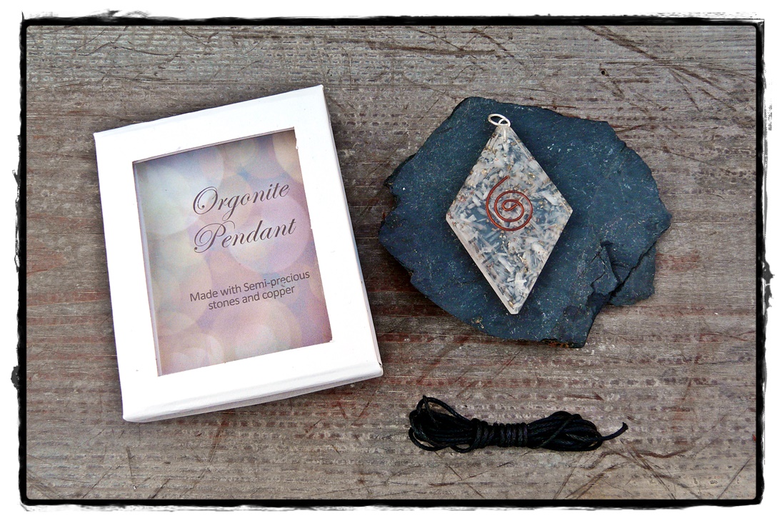 Die Orgonit-Anhänger werden in mehreren Schichten gegossen und anschließend in verschiedenen Arbeitsgängen fertig gestellt. In das Kunstharz ist eine Spirale aus Kupfer eingegossen. Sie ist ein uraltes heiliges Symbol aller Kulturen. So bedeutet die Spirale z. B. im Buddhismus den Weg zur Erleuchtung. Die physische und die spirituelle Energie fließt spiralförmig.