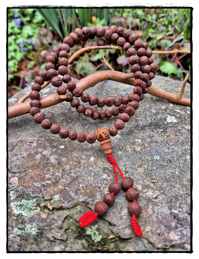 Malas aus Samen sind werden in Nepal und Tibet am häufigsten verwendet. Sie sind nachhaltig. Jedes Jahr können neue Samen geerntet, gebohrt und zu Mala-Perlen verarbeitet werden.