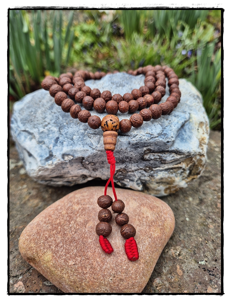 Die Raktu-Samen sind den Bodhi-Samen sehr ähnlich. Die Mala liegt sehr angenehm in der Hand und ist perfekt für tägliche Meditationsübungen oder auch als Begleiter im Alltag. Raktu Samen werden in der traditionellen Praxis oft verwendet, um sich auf das Entfernen von Hindernissen und negativer Energie zu konzentrieren.