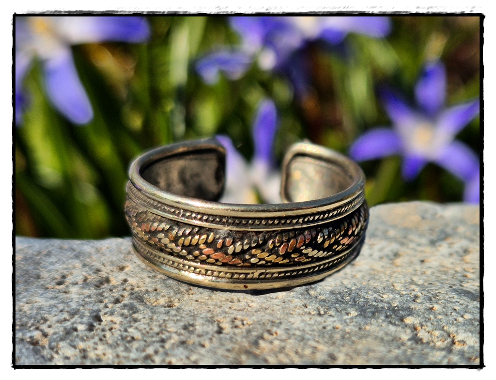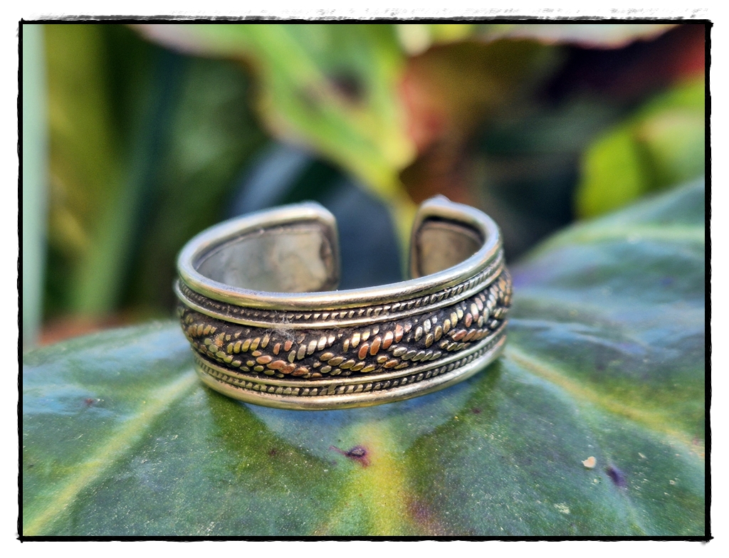 Der verzierte Ring stammt aus einer kleinen Werkstatt in Kathmandu. Er ist in aufwändiger traditioneller Handarbeit produziert.